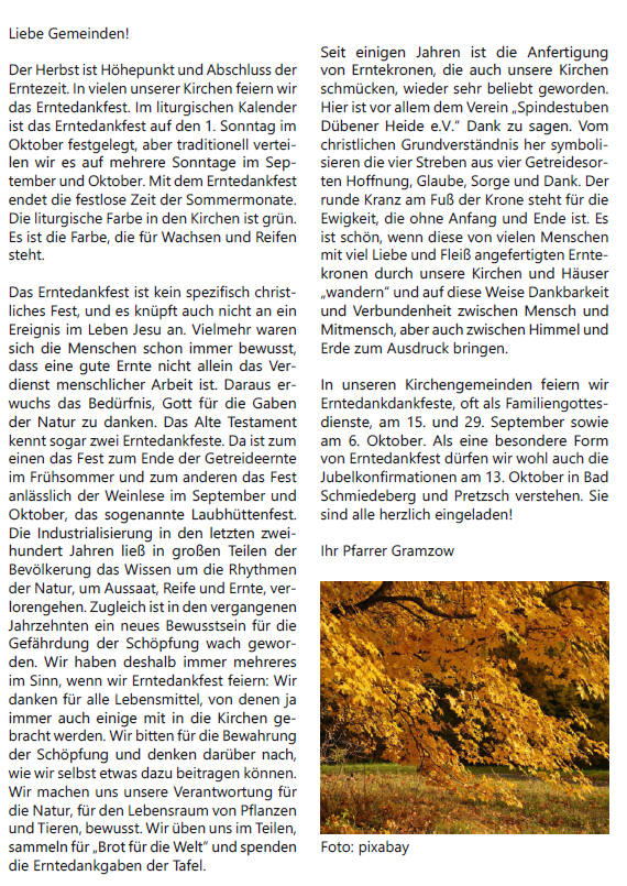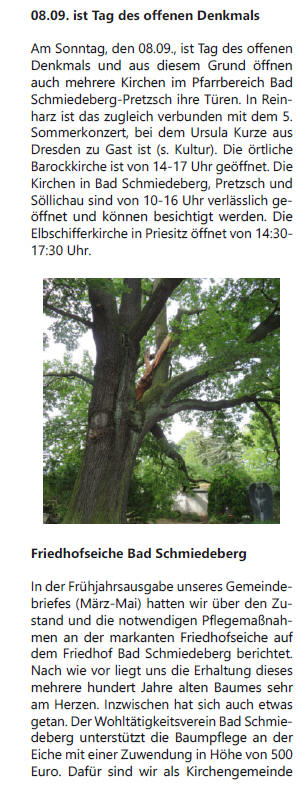 Aktuell zur Pfarrstelle Bad Schmiedeberg-Pretzsch
